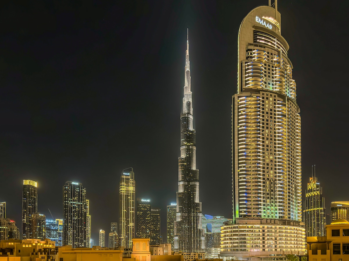 Enjoy the iconic LED light shows of Burj Khalifa from your private balcony. 🛏️ Comfortable Sleeping One king size bed with a high quality mattress plus an extra large sofa bed with a premium floor mattress 2×2 meters. 🌇 Burj Khalifa LED View Balcony facing the LED side gives you a front row seat to the nightly shows. 🎬 Entertainment Everywhere Netflix ready projectors and one smart TV for a cinema in every room. ✨ Blackout curtains and hotel grade bedding for deep, uninterrupted sleep.