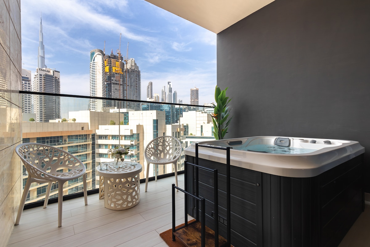 私人按摩浴缸l运河景观-靠近哈利法塔