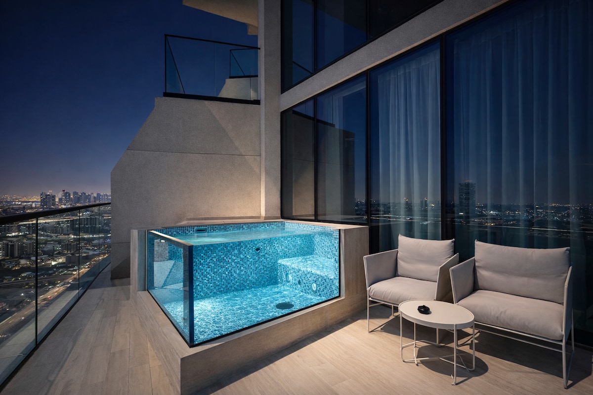 Welcome to your ultra-luxury escape in the heart of Dubai! Located in the iconic Binghatti Trillionaire tower, this 1-bedroom apartment offers the ultimate comfort and exclusivity — featuring a PRIVATE JACUZZI on the balcony with breathtaking views of Burj Khalifa and the glittering Downtown skyline. Apartment Highlights: • 1 Bedroom | 1.5 Bathrooms • Private Balcony with Jacuzzi & Panoramic Burj Khalifa View • Kitchen with premium appliances • Smart TV, high-speed Wi-Fi, air conditioning