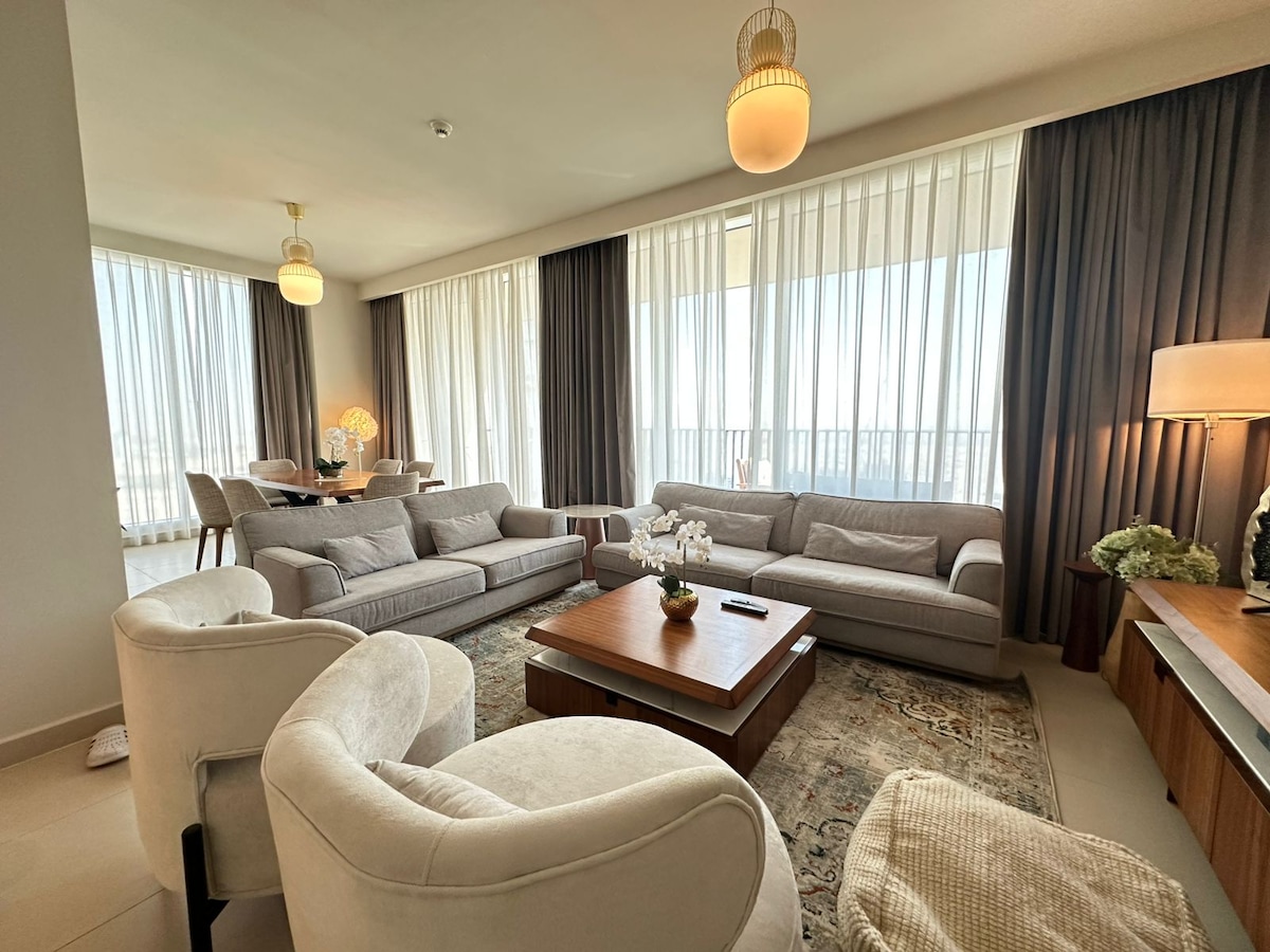 Experience luxury on the 34th floor at the 5 Star Paramount Midtown Hotel and Residence, Dubai near Downtown and Metro. This stylish 1-bedroom, 1.5-bathroom 90 (sqm) apartment offers stunning views of the Dubai Skyline and Ocean. Enjoy high class amenities, a fully equipped kitchen, and a cozy living room. Located in Business Bay, it's minutes from Dubai Mall and top attractions. Sleeps 5 (4 adults + 1 small kid). Includes high-speed Wi-Fi, TVs, private parking, and baby essentials upon request.
