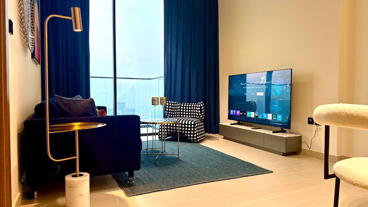 Experience Dubai from the prestigious Binghatti Canal, with a unique view of the Burj Khalifa. The flat can accommodate up to 3 guests and features a double bedroom, living room with sofa bed and Smart TV, modern kitchen with dishwasher and Nespresso machine, bathroom with shower and washing machine. A panoramic swimming pool, gym, fast Wi-Fi, 24/7 security and private parking will make your stay comfortable and unforgettable.