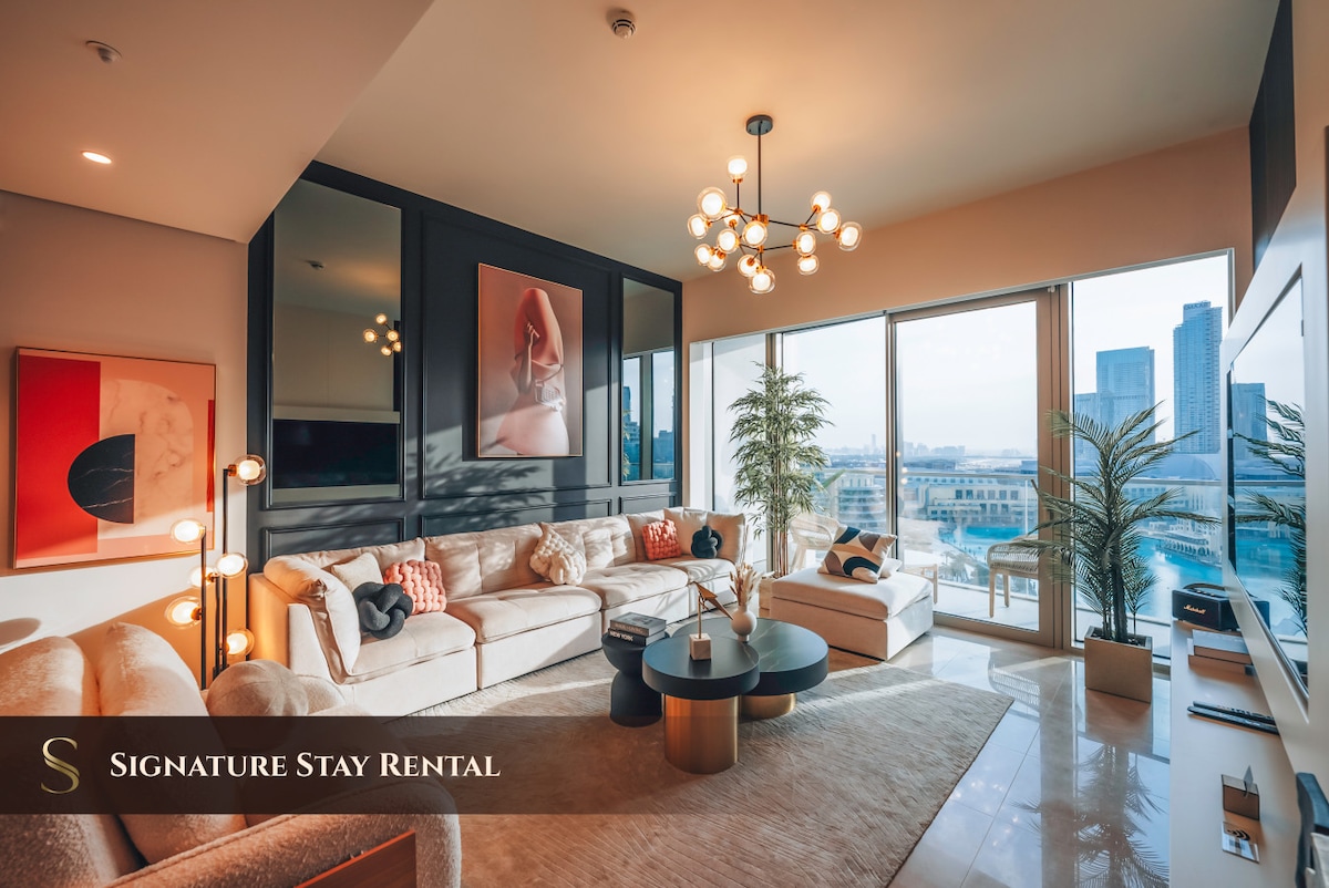 Experience luxury living in the heart of Downtown Dubai. This elegant 1BR apartment features floor-to-ceiling windows, a chic modern interior, and a balcony with breathtaking Burj Khalifa views. Relax in the stylish living room, enjoy a fully equipped kitchen, and unwind in a cozy king-size bed. Perfect for couples or business travelers seeking comfort, convenience, and iconic views.