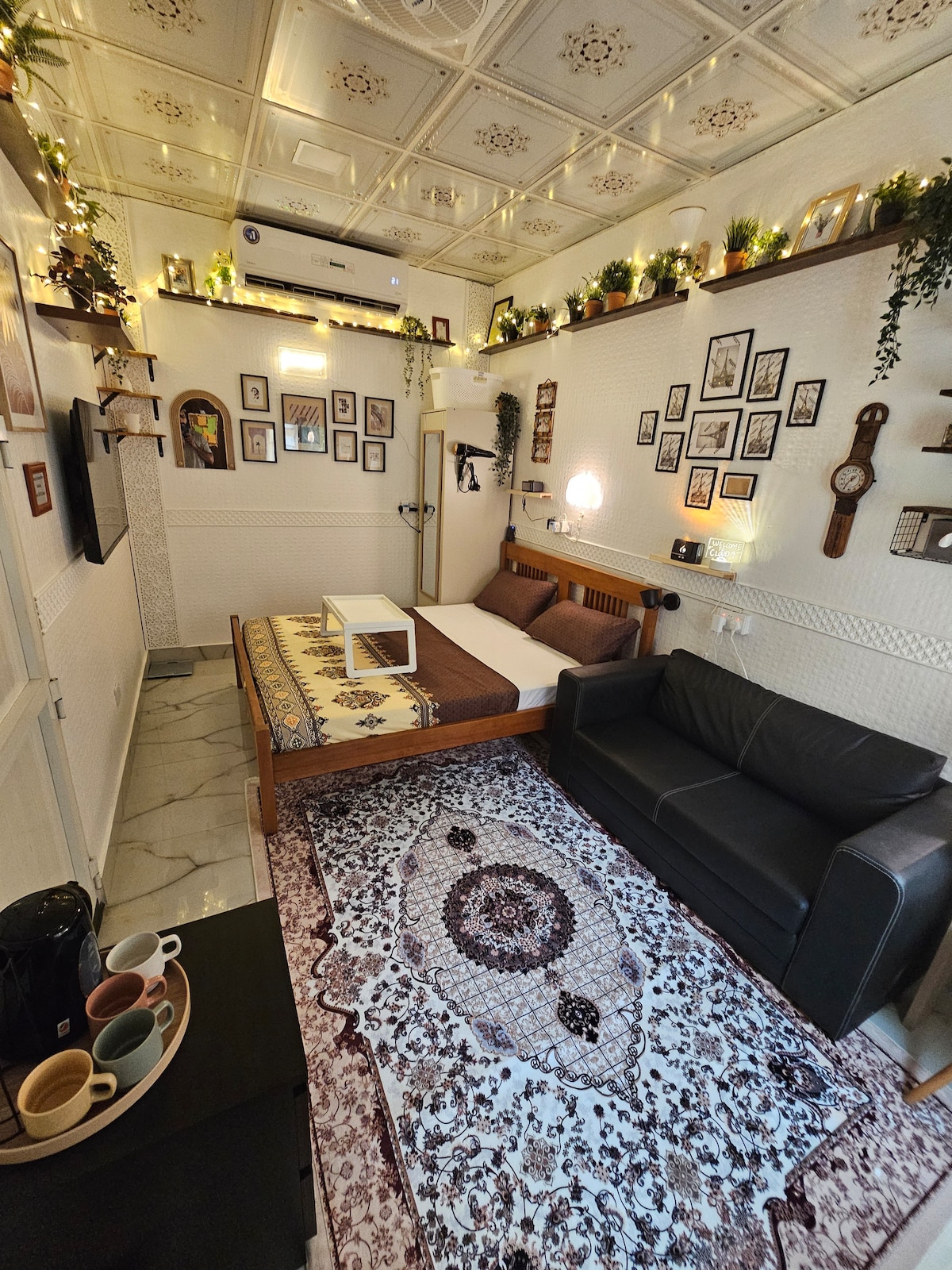 Enjoy total privacy in this fully private, non-shared studio, perfect for couples or solo travelers. Located just 10 minutes from Downtown, you’ll be close to Dubai’s top attractions. Oasis Mall is a 5-minute walk, and right across the street you’ll find a petrol station and KFC for quick essentials. Getting around is easy with a bus stop 5 minutes away, connecting you to the nearest metro in just 2 stops. After exploring the city, relax and unwind in this stylish Boho-inspired studio 🍂
