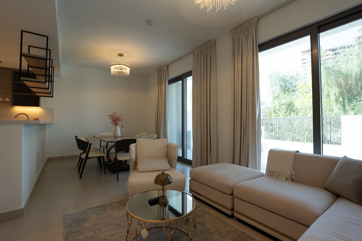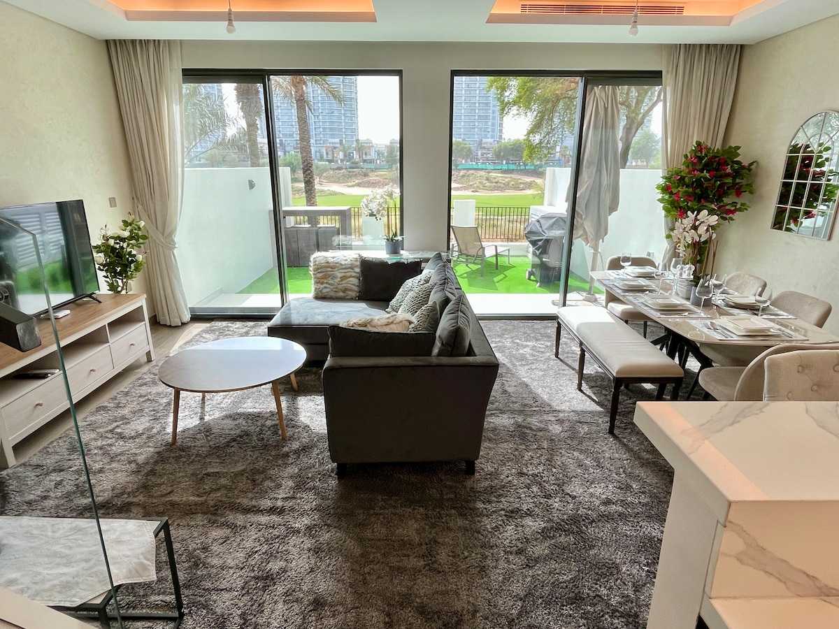 Experience luxury living in this stunning 3-bedroom townhouse in Damac Hills. With an elegant & bright interior, this modern home offers a spacious living area and a fully equipped kitchen. Step outside to your private garden or relax by the community pool. Enjoy the prime location surrounded by lush greenery. Perfect for families and groups, this townhouse offers comfort and convenience. All inclusive bills and fully equipped, this is the perfect place to call home during your stay in Dubai!