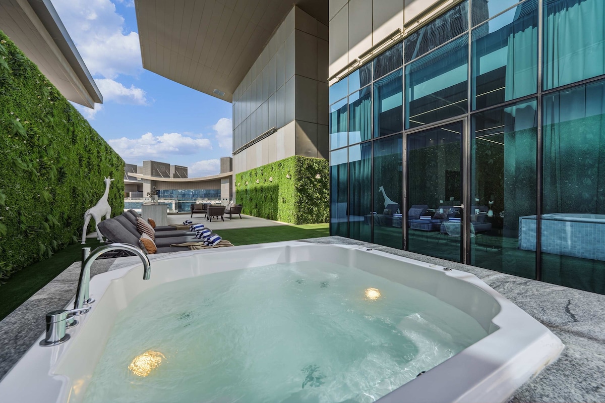 棕榈顶层天空别墅-宽敞露台和按摩浴缸