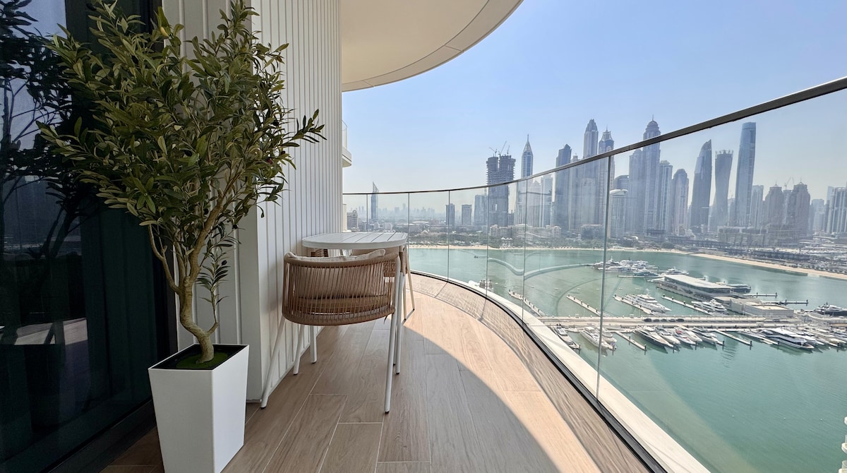 Experience beachfront living at Grand Bleu Tower on Dubai’s exclusive Emaar Beachfront. This stylish 1BR offers breathtaking views of the Atlantis, Palm Jumeirah and Arabian Sea — stunning by day, mesmerizing at sunset, and sparkling at night. Unwind by the infinity pool, relax on the private beach, or enjoy the calm from your balcony. Designed for comfort and elegance, it’s the perfect setting for an unforgettable Dubai stay.