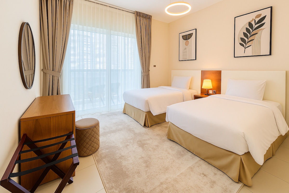 Enjoy a comfortable stay in this modern 2-bedroom apartment located near Dubai World Trade Centre, Sheikh Zayed Road, and the Metro station. Ideal for business travellers and families, the apartment offers spacious bedrooms, a bright living area, a fully equipped kitchen, modern bathrooms, high-speed Wi-Fi, and free parking. A perfect central base with easy access to exhibitions, shopping, dining, and major Dubai attractions. Enjoy a stylish experience at this centrally-located place.