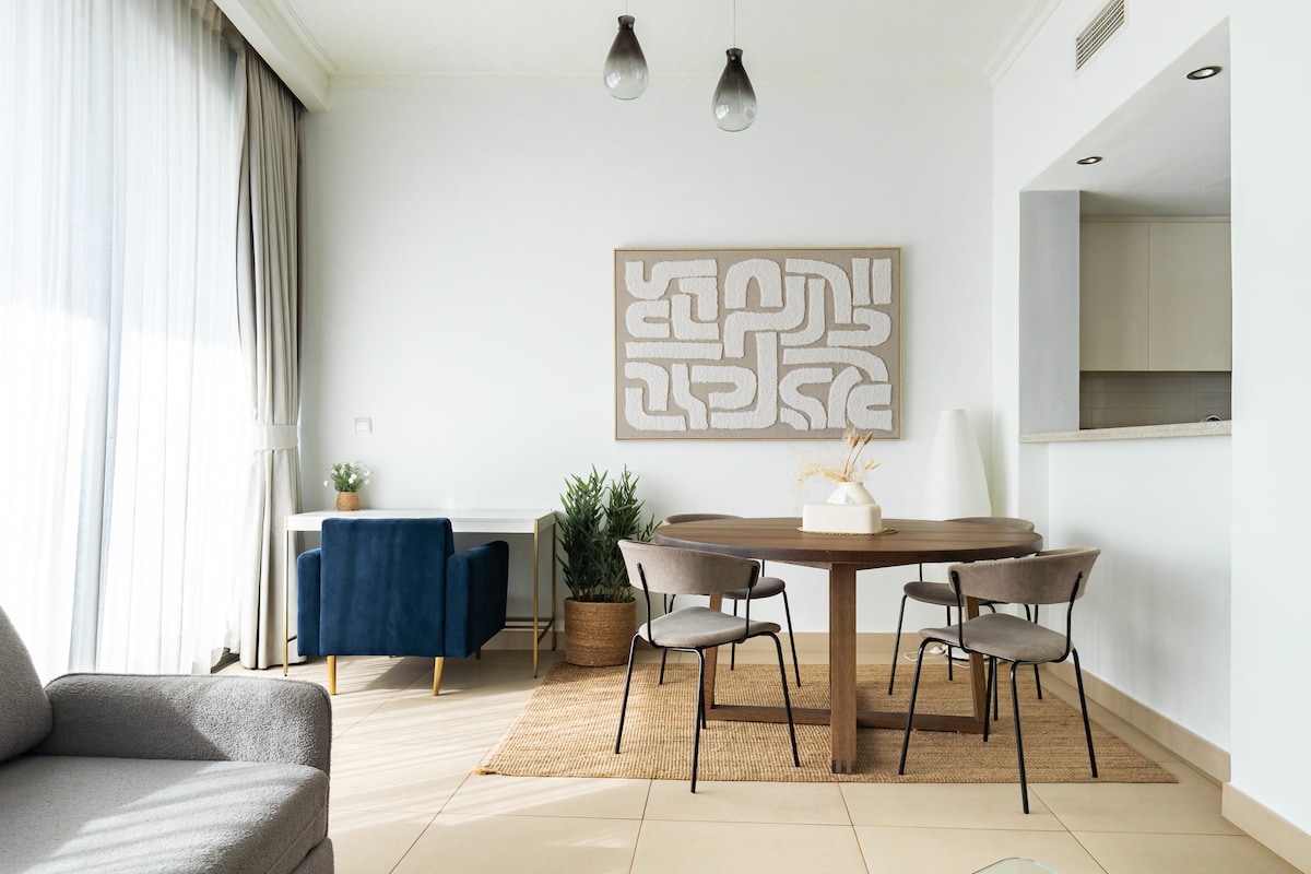 Indulge in luxury at this 3-bedroom apartment in downtown Dubai, offering unrivaled views of the iconic Burj Khalifa, Dubai Dancing Fountain show & the Ocean. The breathtaking view is visible from the bedrooms, the living room, balcony, and dining area - immerse yourself in this visual spectacle. You can also drop off your bags from 11:30am in the morning and grab the keys to enjoy the neighborhood luggage free or enjoy the building amenities before your check in time.