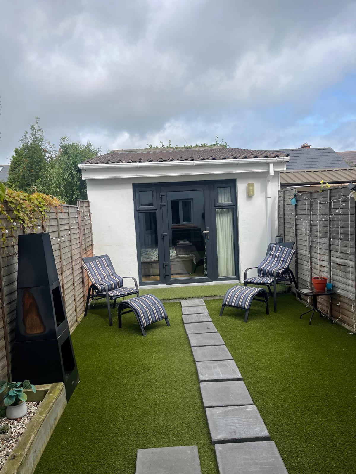Kick back and relax in this stylish, calm space. Vanessa's studio is a cute, self-sufficient little pad nestled in the backyard of a friendly family home in quiet, suburban South County Dublin (40-60 minutes from Dublin City Centre). With its own private entrance, a basic kitchenette, WiFi and towels provided, it's perfect for a short stay for one or two guests. Infants up to 2yrs also welcome (travel cot available) and it's pet friendly.