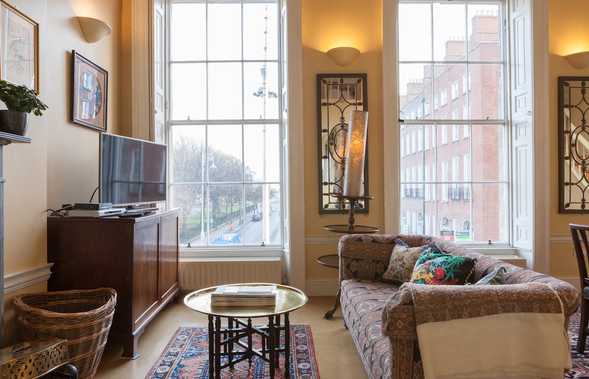 Experience authentic Georgian elegance is this large bright studio apartment, overlooking park. Accommodates two in cosy sleeping loft. Cook dinner in the designer kitchen, and then head out to enjoy the attractions of the city. CAVEAT: This is a city centre location, definitely NOT 'leafy suburbia'...Guests should be aware that there is potential for noise- both from the street, and ambient noise within the house. Old houses, by their very nature, are not sound-proof...