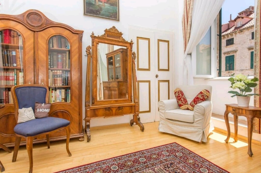 Traditional apartment ''Nono'' in the heart of the old town of Dubrovnik,with traditional restored furniture.High ceilings,large windows with a beautiful view of the main street Stradun and the old town sights.Quick finding of a family house with no stairs.The apartment is located on the first floor of a family house. Separate entrance. You have your privacy. If you need recommendations for a taxi to wait for you at the airport, we have it for a surcharge.Luggage storage after check-out is free.