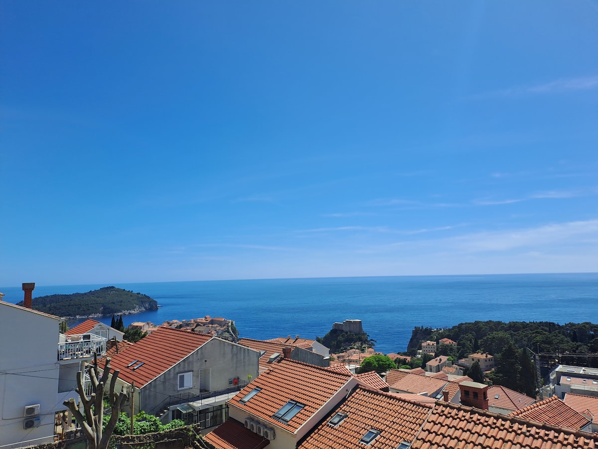 Bright, cosy and spacious apartment with a private balcony is overlooking the Adriatic sea, island Lokrum and city walls of Old town. It is perfectly located in an attractive part of Dubrovnik, called Ploče, only a few minutes walking distance from the Old town, restaurants, Banje beach and all the attractions. but still far enough from the city noise which gives you the opportunity to relax and enjoy the peace and breathtaking views.