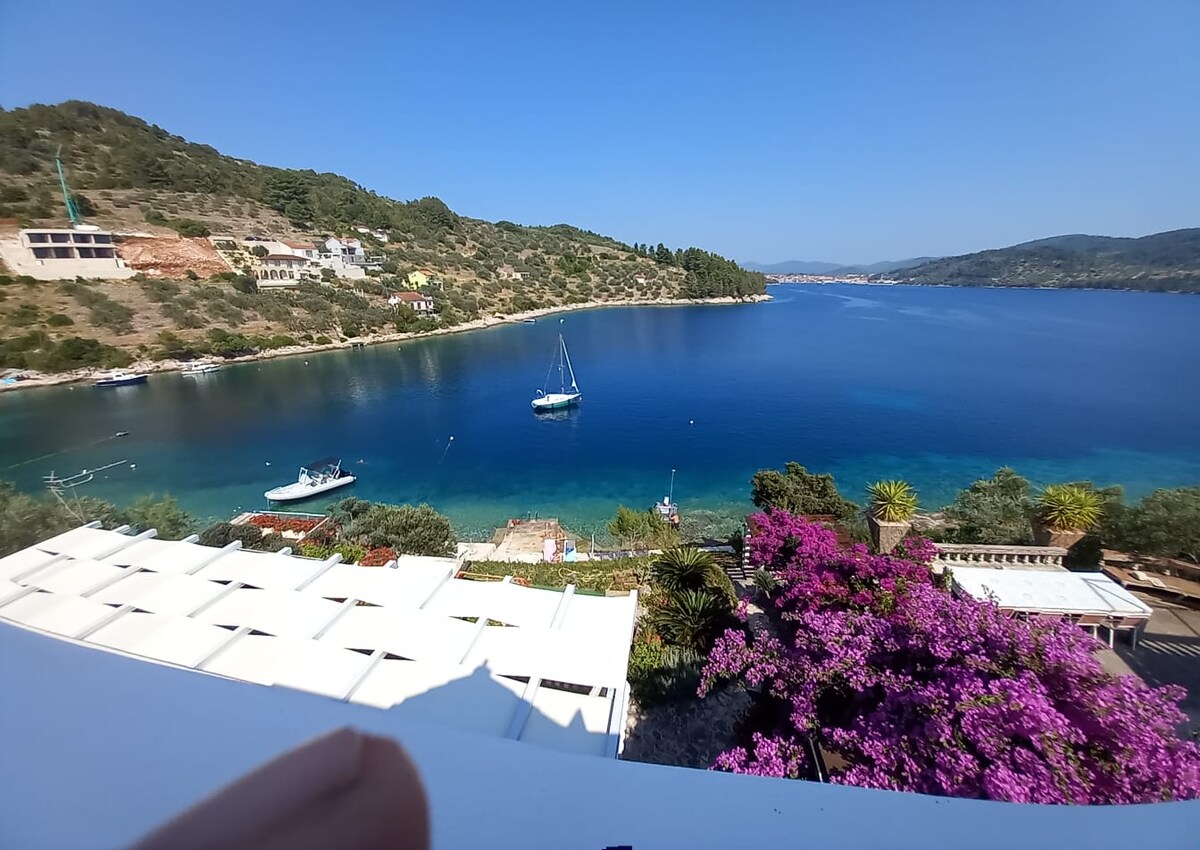 Bright and friendly, you will find our comfortable 60 m2 apartment. It is surrounded on both sides by a large outdoor balcons which lines the back of the house, to a densely vegetated forest. 500 m. from the quiet beach and 600 m. from visited beach. Walking distance to the beach and old town city center. Comfortable apartment close enough to everything but far enough so you can enjoy peace and privacy, is situated at the ideal point for you to explore Korcula island or just relax. Free parking