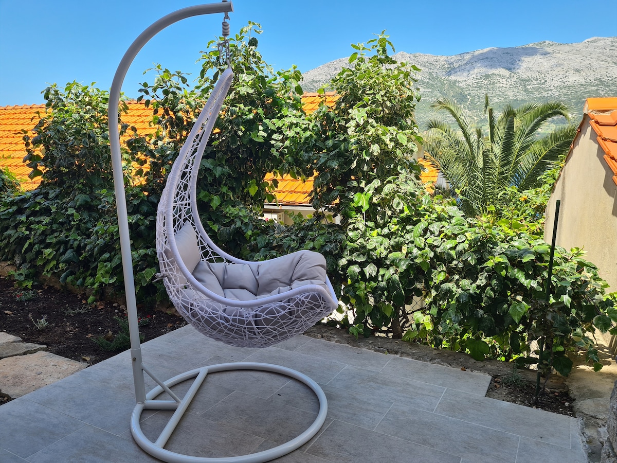 Our apartment is sittuated on the quiet location, few minutes walking distance from the Korcula Old Town and from the beach. It has private parking place. In front of the apartment there is a small garden and terrace with a view to the sea and Pelješac peninsula. Apartment is located on the ground floor of a family house but it has a separate entrance that ensures privacy.