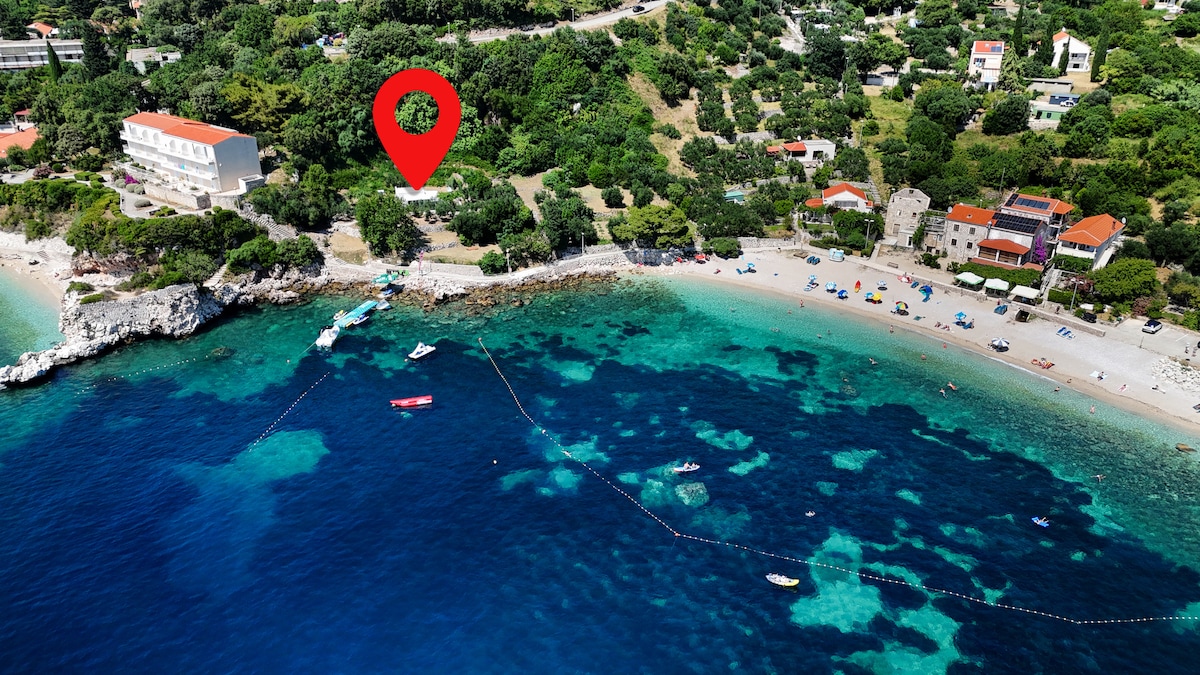 Nestled in a prime beachfront location, this delightful house offers uninterrupted views of the sparkling Adriatic Sea. Here, you’ll be enchanted by stunning sunsets, the soothing ambiance of a pristine pebble beach, and the added charm of a seaside restaurant just moments away.