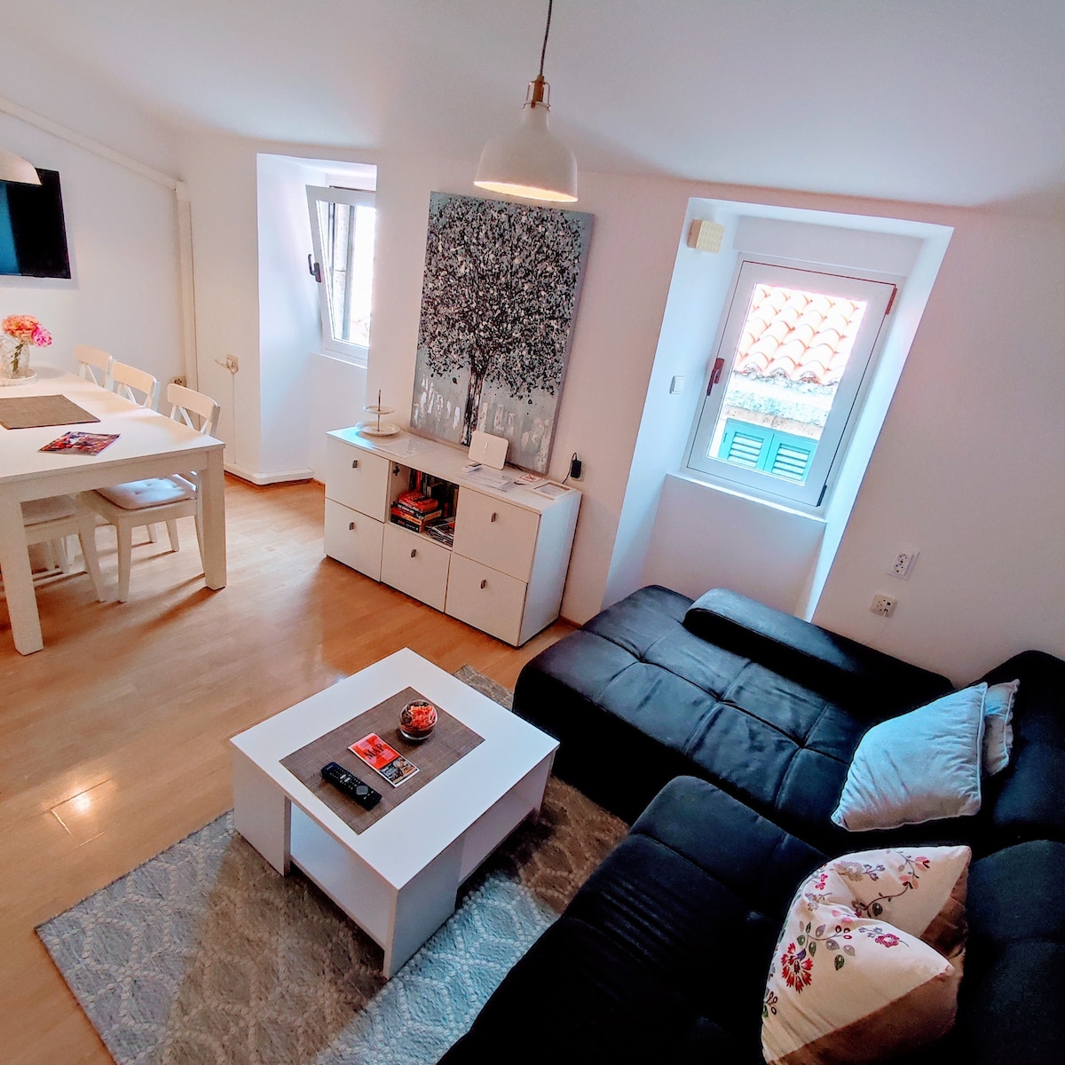 Vaulted ceilings and roof beams give an authentic charm to this home which features an eclectic decor and rustic-chic aesthetic. Skylights bathe each room in natural light and you can enjoy performances and concerts from the windows on the right day. Besides all the usual equipment necessary for everyday living, it is a kind of art atelier due to musical instruments, easel and my mother's theater photos and posters around. If you appreciate art this is a perfect atmosphere for you..