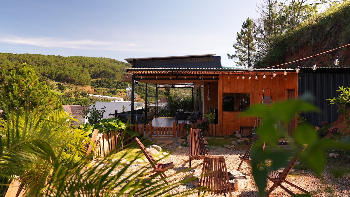 A wooden house tucked in a pine valley, 10km from Dalat. With 2 bedrooms, kitchen, garden, deck, and stream nearby, it’s a quiet, private place—only one booking at a time. Wi-Fi may be unstable. We recommend bringing ingredients to enjoy home-cooked meals. Mornings start with birdsong and pine-scented air. A grassy field rolls down to the stream—perfect for your heart. Road suits motorbikes, CUVs, or SUVs. A camera on the terrace ensures safety—indoor space is fully private.