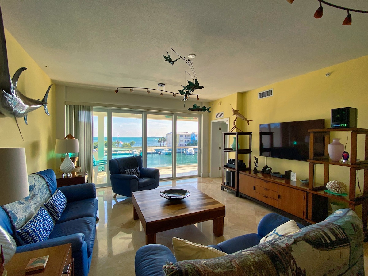 海景2卧/2卫,带泳池、酒吧、健身房+码头28英尺