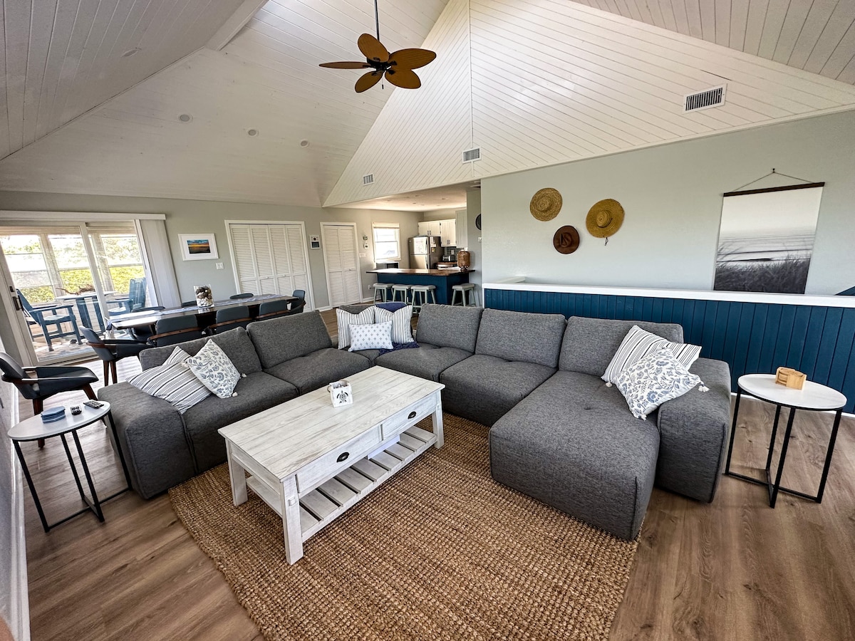 Welcome to Wright by the Sea OBX, a centrally located classic Outer Banks beach cottage! Enjoy the open floor plan complimented by the tall wood beam ceilings and beautiful natural lighting. Start your day on the spacious porch with a cup of coffee in hand or take a short walk to watch the sunrise over the Atlantic. After spending the day on the beach with your family and friends come home and mix up a meal in our new kitchen or order out from one of the many nearby restaurants.