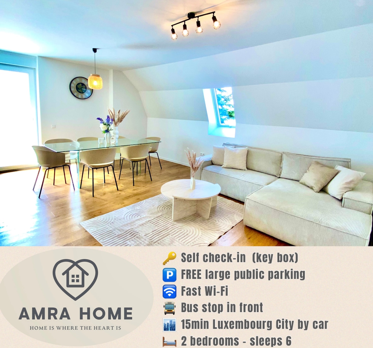 Entrez dans cet appartement très lumineux d’une petite résidence discrète où le confort et l'élégance se rencontrent parfaitement. La cuisine est entièrement équipée, les TV proposent tous les services de VOD et chaînes du câble. Connexion internet fibre L'appartement est idéalement situé, à proximité de l’autoroute, du centre ville, d’un supermarché et d’un distributeur de pizza 24/24. 20 mn de Esch 20 mn de Thionville 30 mn de Metz 30 mn de Luxembourg 40 mn de Arlon (Belgique)