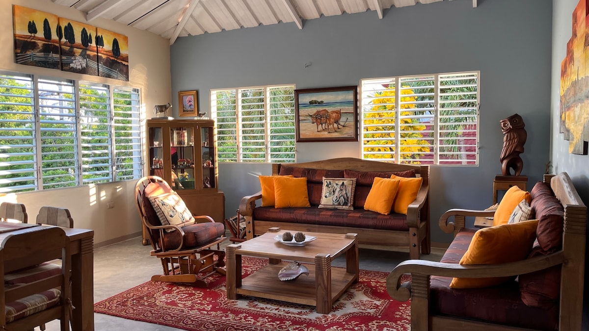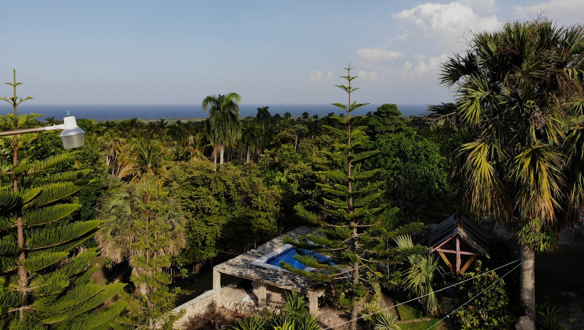 Idéalement située au cœur d’une résidence privée de vacances, notre villa entièrement rénovée propose confort et déconnexion. Entourés d’un jardin d’exception vous profiterez d’une terrasse spacieuse avec vue sur mer. Parfait pour les amoureux de la nature, du calme, randonneurs et sportifs. Trésor caché dans les collines de Cabrera, vous serez à 10 mn en voiture du village et 15 mn des plus belles plages et lacs de la côte nord de la République Dominicaine.