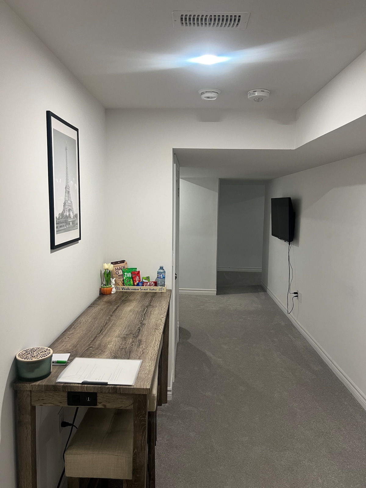 Beautiful inviting space for families as well as individuals. Brand New Fully renovated area with lots of amenities for the whole family. 2 Great size bedroom with queen size beds. Jack And Jill full washroom with an amazing shower that boast body jets. Comes with all the bells and whistles. Open concept with Living room, Dining room, Full Kitchen, Washer and Dryer, free parking, work area ideal for remote work, and lots more…. NO UNREGISTERED GUESTS ARE ALLOWED AS PER HOUSE RULES.