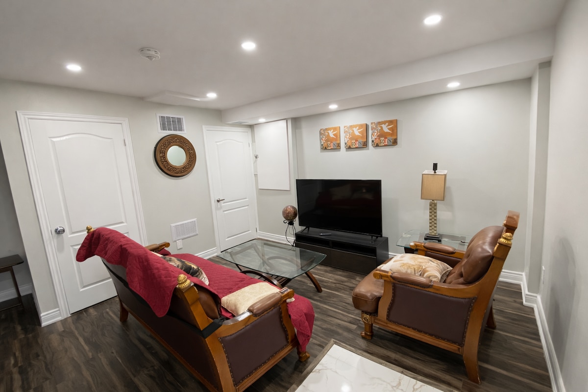 Welcome to our spacious and fully furnished 3-bedroom, 2-bathroom basement apartment in the heart of Orangeville! Just a 10-minute walk to Headwaters Health Care Centre and a 5-minute drive to Mount Alverno Luxury Resorts. Enjoy fast Wi‑Fi & a Smart TV (Netflix, Prime Video, Disney+). Explore Island Lake Conservation Area, scenic trails, local parks, and charming Broadway boutiques and cafés. Perfect for medical stays, business trips, outdoor escapes, or memorable times with family and friends!
