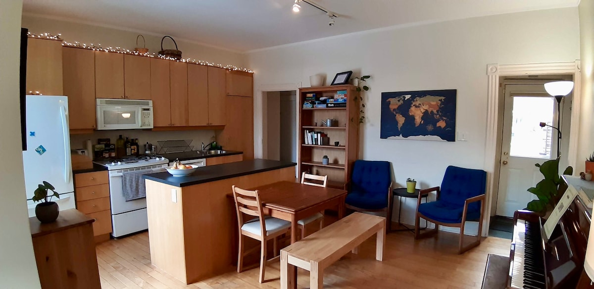 This stylish suite is ideal for couples, a small family, solo guests and business travellers. Nestled in the heart of vibrant Bloordale, my suite gives you a direct tap into the pulsing beat of the city. Explore our diverse neighbourhood and enjoy the cool vibe that is a mix of grungy, artsy, hip, trendy, and eclectic. Hop on a subway and explore Toronto - the subway is literally below the unit! Please note slight noise/rumbling from the subway below the unit and street noise.
