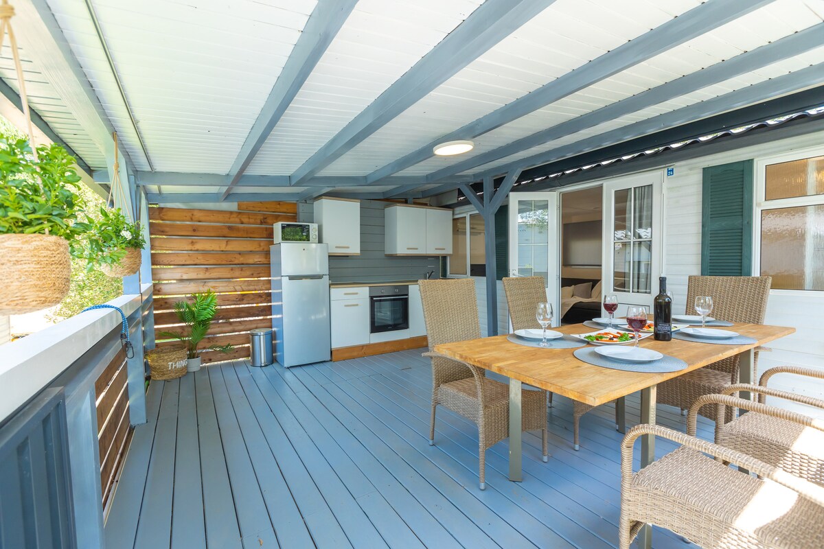 Dobrodošli u našu ugodnu i pažljivo uređenu mobilnu kućicu, smještenu svega 10 metara od mora. Idealna je za goste koji žele pravi ljetni odmor, blizinu plaže i opuštenu atmosferu, daleko od gradske gužve. Kućica je funkcionalna, čista i ugodna te nudi sve što vam je potrebno za bezbrižan boravak – bilo da dolazite na kraći odmor ili duže ljetovanje. Posebna prednost je terasa na kojoj možete uživati u jutarnjoj kavi, obrocima na otvorenom ili večernjem opuštanju uz spektakularn pogled na more.