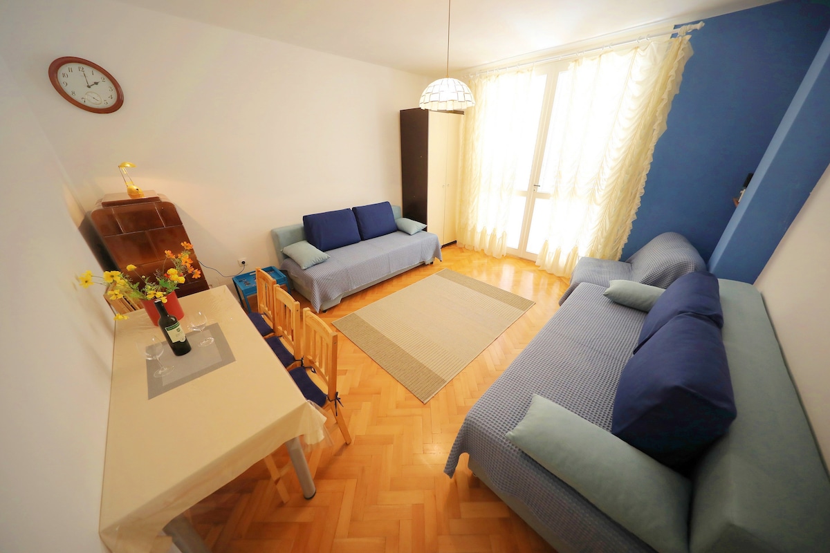 Stan ima 44 m2 . Nalazi se u novoizgrađenoj zgradi. Sastoji se od velikog dnevnog boravka s kuhinjom, kupaone i 1 spavaće sobe. Stan je kompletno opremljen ( perilica rublja i posuđa, frižider i zamrzivač ) i za duži boravak gostiju. Tu je i besplatna wi-fi internetska veza i klima uređaj. Idealan je za dvoje. Blizina plaža. Blizina centra grada, kulturnih i rekreacijskih sadržaja. Stan je udoban , raspored stana je praktičan. Možete uživati u svojoj privatnosti .