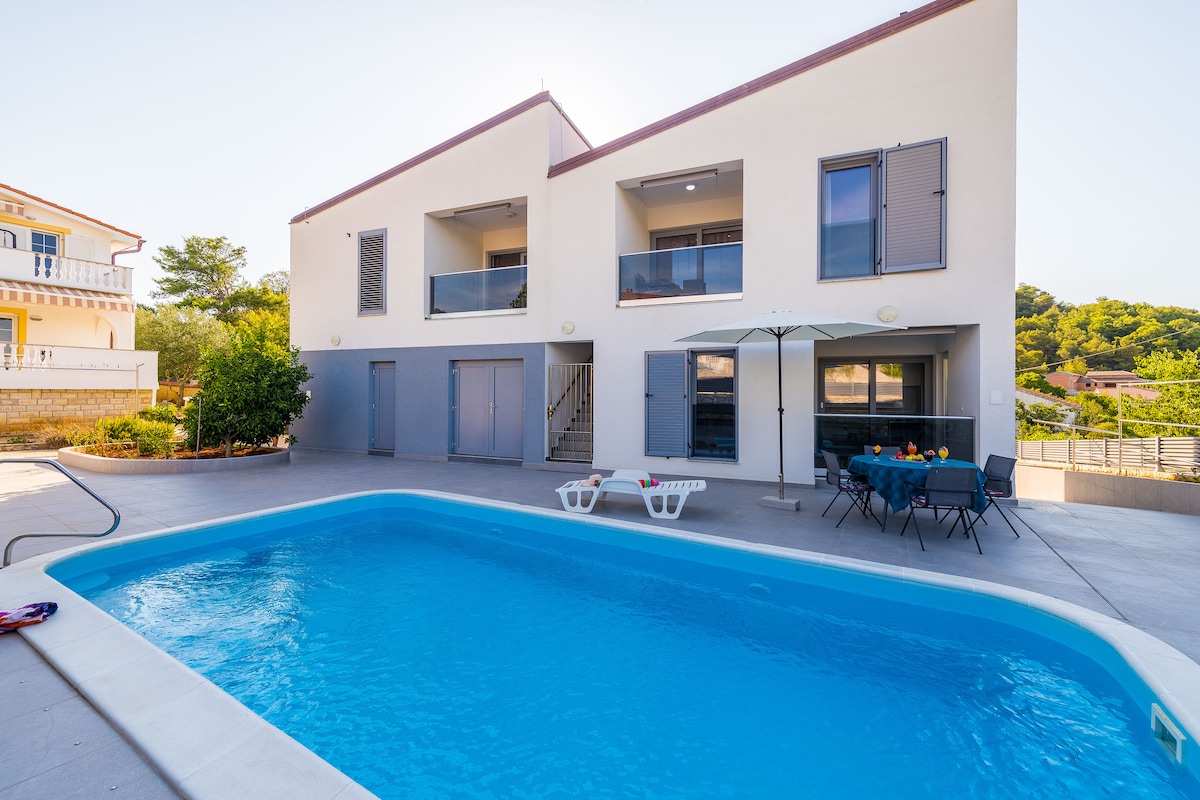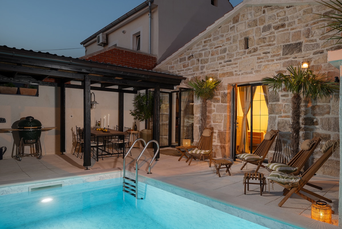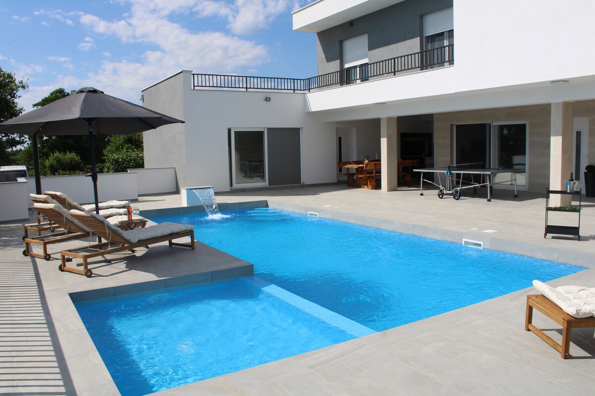Welcome to villa Velebita! A unique property offers you everything you might need for having unforgettable holidays in Croatia! The property is located in the suburbs of Zadar city, where you can enjoy a peaceful time with your family or friends away from a city noise and fuss, swimming, sunbathing and sipping on cold drinks near the pool, making meals in summer kitchen and gathering at huge oak table, and viewing magnificent mountains of Velebit.