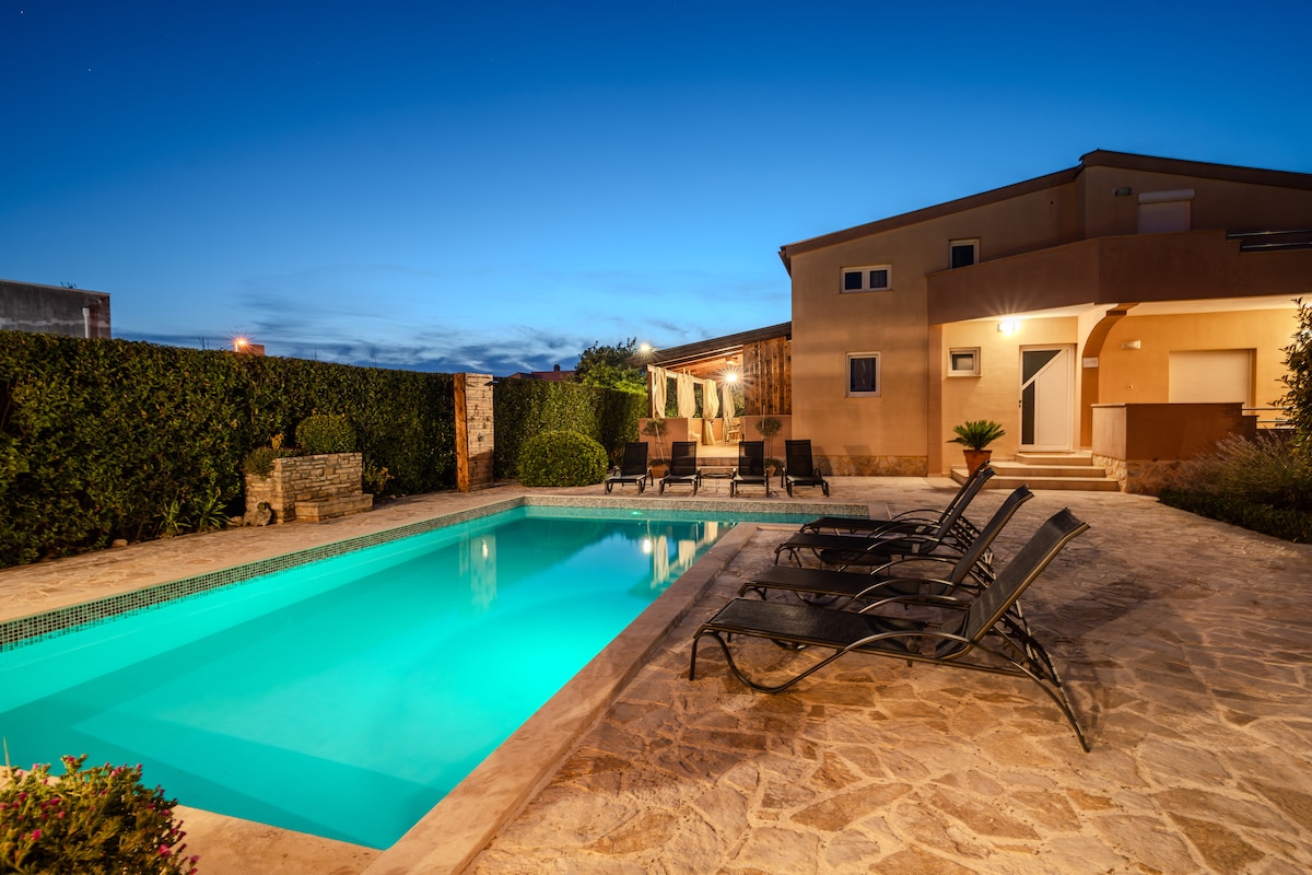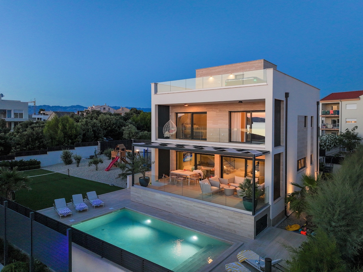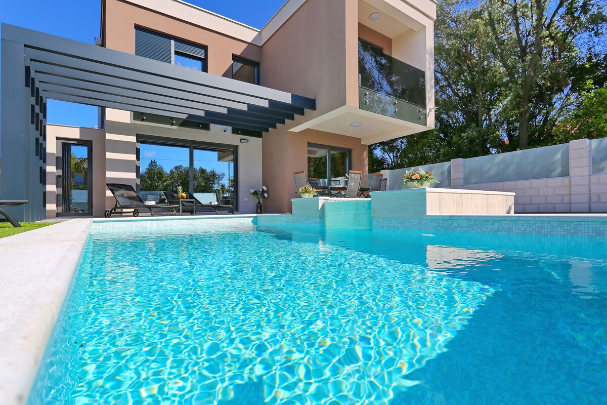 Casa AL ESTE is not just another villa in Croatia..it's your unique summer escape in one of the most beautiful bays in Petrčane Zadar..our goal was to create a place for YOU to be HAPPY from the moment you arrive..it's a dream & for sure a destination you don't want to leave..PURE JOY..200m2 highest level of excellence, 40m2 pool, private fitness & yoga area, sauna, 3 bedrooms, 1 huge comfy couchbed, 3 bathrooms, 5 parking spots & lots of other luxury details for up to 5 persons! Just BOOK it!!
