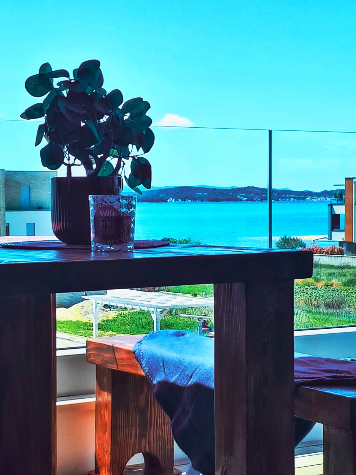 Enjoy the beautiful sea view with a glass of good Croatian wine in a family and friendly environment. Ideal for romantic walks by the sea . The facility is located in a quiet family village Diklo. Near the house there is a church, the distance from the beach and promenade is around 100 m as well as from the nearby caffe bar, grocery store,restaurant and children playground. The city center is only 6 km away, the nearest airport is Zadar Airport, 16 km away from the apartment.