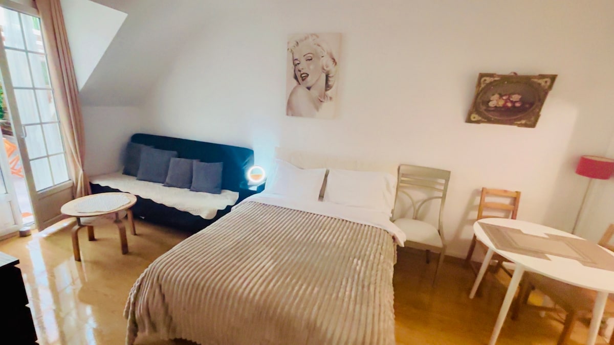 Dans une petite copropriété familiale, studio confortable et fonctionnel pour 1 à 2 personnes, disposant d'un coin cuisine bien équipé, d'un espace bureau, d'une belle salle de bain, et d'un canapé-lit (clic-clac). Une table basse transformable permet d'avoir un espace pour les repas. Une place de parking est possible sur demande.