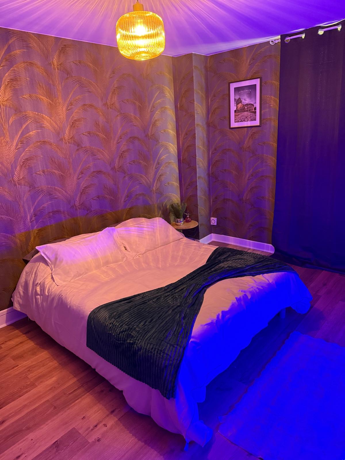 The red suite est aux portes de Paris, du stade de France et de l'aéroport Paris-Charles-de-Gaulle. Logement PMR Cet appartement, complet, ose dans la couleur, le charme de la modernité, mais aussi dans le confort visuel du voyageur, trop de blanc et toujours du blanc, tue le blanc, n'est-ce pas ? Ce logement est pensé de manière à que les voyageurs découvre un nouvel univers de couleurs, d'harmonie, un confort et de praticité .