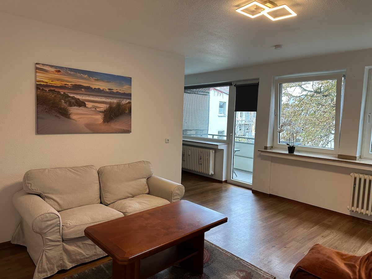 Beautiful 65 m² apartment in the heart of Duisburg with a large balcony 🏖️ (incl. seating area & Strandkorb) and perfect connections to Duisburg Central, Düsseldorf & Messe Düsseldorf 🚆 Highlights: U-/tram stop (Platanenhof) 200 m (U79/903) 🚋 Central yet quiet 🌳 Underfloor heating 🔥 Fully equipped kitchen 🍽️ Home office space 💻 Rain shower 🚿 In-room bar 🍷 Smart TV with Netflix 📺 Ideal for city trips or business stays ✨ Fast charging station for electric cars right on the street ⚡🚗