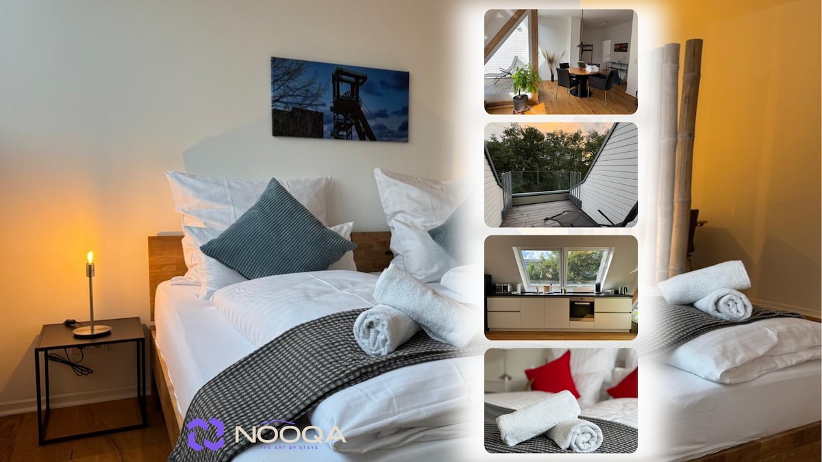 Welcome to NOOQA ✨ – your retreat in Duisburg. Bright, light-filled rooms and high-quality materials create the perfect blend of modern design and a cozy atmosphere. ✔️ 2 bedrooms (en-suite bathroom, beds separable) ✔️ 2 modern bathrooms (shower + bathtub) ✔️ Open-plan living & dining area ✔️ Balcony & kitchen ✔️ Smart TV & Wi-Fi ✔️ Within walking distance to the main station, restaurants & supermarkets ⭐ “The apartment is a dream – bright, modern, and perfectly equipped.”