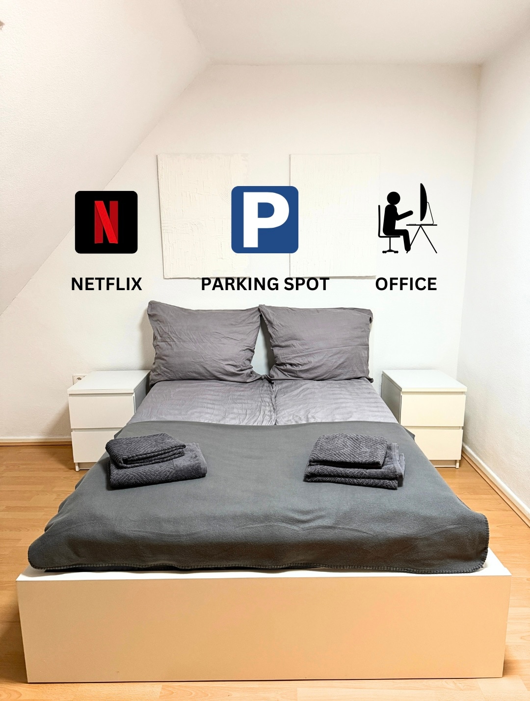Das Appartement ist zentral in Düsseldorf -Friedrichstadt gelegen. Das Appartement besteht aus einem Ess- und Wohnbereich mit Schlafsofa (mit durchgehender Matratze) sowie einem Schlafzimmer. -Smart-TV und Balkon. Im separaten Schlafzimmer befindet sich ein großes Doppelbett und ein geräumiger Kleiderschrank. Dort ist auch ein heller, großer Schreibtisch vorhanden. Dort kann auch die 3. Person auf dem Extrabett schlafen. Die Betten sind bereits bezogen und Handtücher liegen bereit.