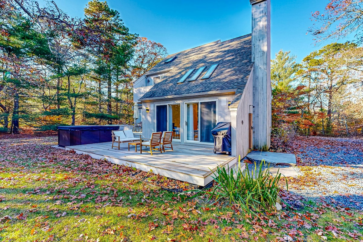 Welcome to your cozy Cape cottage! The perfect autumn escape. Enjoy the steamy hot tub, sip cider by the fire pit, or breathe the crisp ocean air on a walk. Our space offers comfort, warmth, and seasonal charm. This cottage blends indoor comfort with outdoor beauty – ideal for long weekends, wedding guests, romantic getaways, and marathon runners. Walk to local restaurants, the Martha’s Vineyard ferry, and scenic paved paths. Fall brings fewer crowds, colorful foliage, and a beautiful coastline.