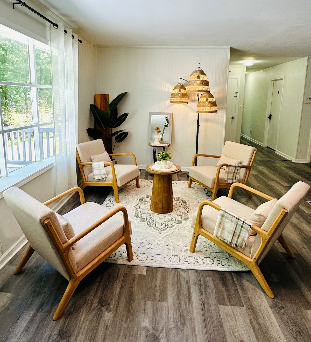 This quiet wooded sanctuary is spacious and beautifully decorated . Lake Lanier is 15 minutes as well as Infinite Energy Center, I-85 and Mall of Georgia. This large dedicated terrace level apartment is fully furnished, super fast WIFI and complete privacy in neighborhood of high end homes. Come and go with keyless entry. Relax in the shade garden, fire pit, porch swing or watch the soothing koi. Separate air system. Extra cleaning protocol is in action for your safety.