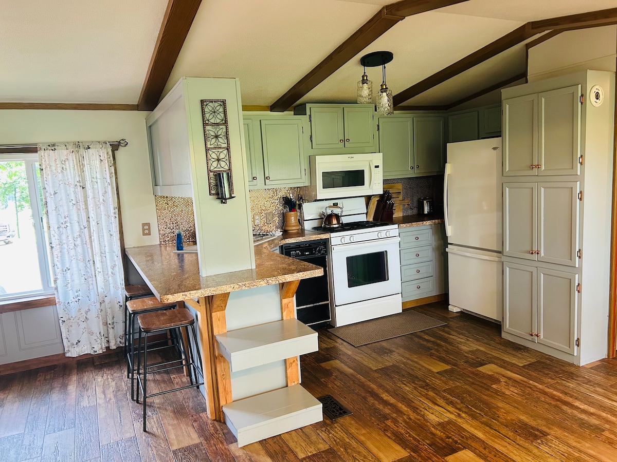 Entire cottage to yourself with a magnificent lake view. We have 315 feet of lakeshore located on 4 acres on Island Lake. We have a private dock. Our 900 square ft cottage has a full kitchen, dining room, living room, two bedrooms, bathroom, and a couch that opens up into a bed. A fire pit is available, ( wood furnished), along with a canoe and 2 kayaks You can fish off the dock or bring your own boat. A pontoon boat is available for rent. We will except two dogs.
