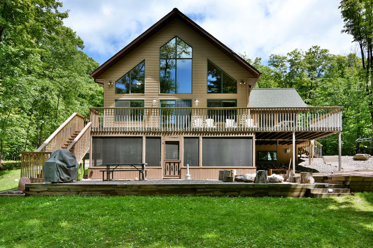 Scandi-style lake house is all set for your private relaxation. Completely painted and refreshed - now open for summer lakeside bookings! Nestled in bucolic, expansive woods and waters just 3 hrs from Twin Cities/4 from Madison. Barnes, Wis., swim off our dock (390 of private water frontage), boat on beautiful Middle Eau Claire Lake, wander the country lanes, relax in modern comfort. Bike the miles of trails. Blazing fast wifi (500+ Mbps). Modern, hygge space. 2.4 acres all yours.
