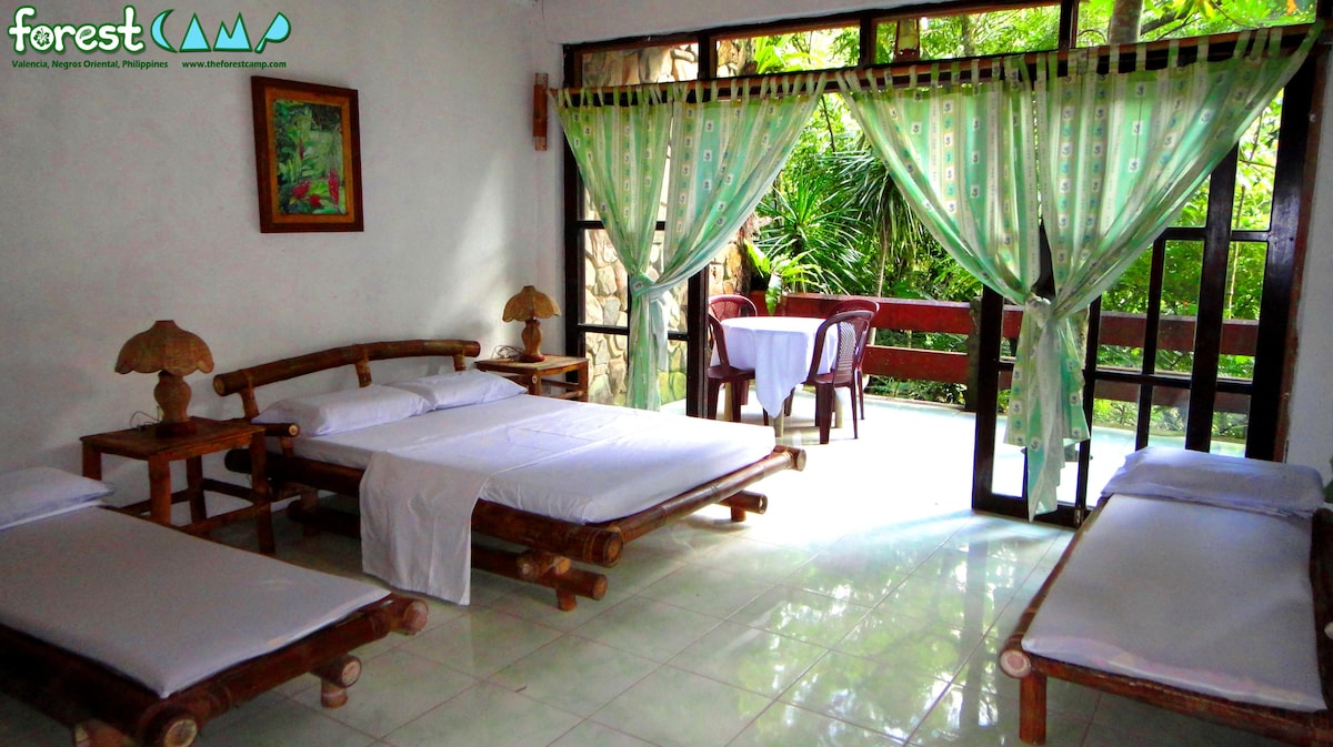 This is a 2 story cottage that has an amazing view over a river, a swimming pool, and a hanging bridge. It can accomodate 10-15 persons. It has 2 bathrooms. It's Non A/C but no need to worry because this in the highlands, so its cool.