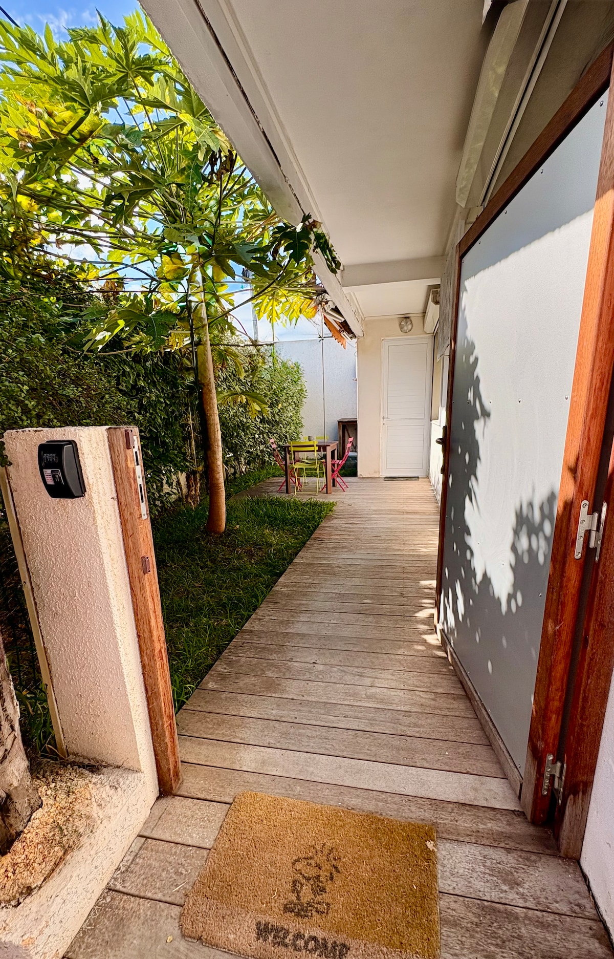 Studio de plain pieds tout équipé (vaisselle, électroménager, literie, linge de maison, lave linge, climatisé, wifi) avec une terrasse et vue sur un magnifique jardin de palmiers . Situé dans un quartier calme avec des commerces à proximité. Très bien desservi par les lignes de bus.