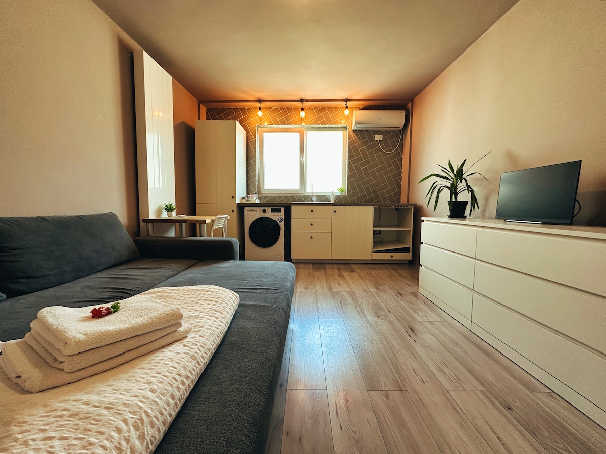 Bine ai venit la Studio 7, un refugiu urban la doar 10 minute distanță de centrul orașului. Situat într-un bloc vechi din perioada comunistă, interiorul nostru modern te va surprinde cu un design aparte, care combină confortul contemporan cu farmecul istoric. Fiecare detaliu este atent ales pentru a crea o atmosferă primitoare, iar finisajele elegante îți vor oferi o experiență unică. Studio 7 este locul perfect pentru a explora orașul și a te relaxa după o zi plină de aventuri.
