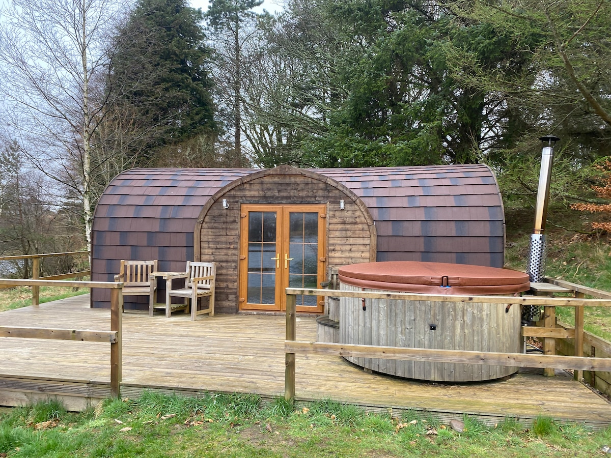 Skidded View Camping Pod Comes with a king size bed that can also be used as two singles. It also has a sink with running hot and cold water and numerous electrical points. Heaters provided. Kettle, toaster, microwave and small fridge freezer also provided for your convenience. Toilet and shower block located only ten metres away from the pods. Parking outside each pod. Fire pits included. Well behaved dogs welcome but not to be left in the pod unsupervised.