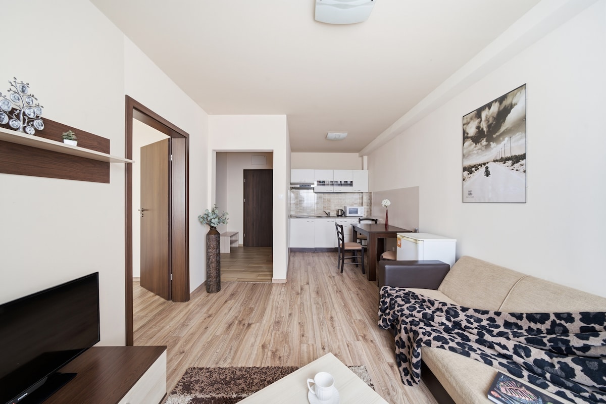 Útulný apartmán v tichej lokalite v centre mesta Šamorín s rozlohou 45 m ². K dispozícii je 1 spálňa s manželskou posteľou. Plne vybavená kuchyňa, kúpeľňa so sprchovým kútom a WC. Obývacia izba prepojená s kuchyňou, jedálenský stôl, pohodlná sedačka a balkón. Byt je orientovaný do tichej časti dvora za bytovkou. Kuchyňa je plne vybavená pomôckami a spotrebičmi (chladnička, rýchlovarná kanvica, elektrická varná platňa a rúra) a raňajkovým stolom pre dvoch. V predsieni je úložný vešiak.