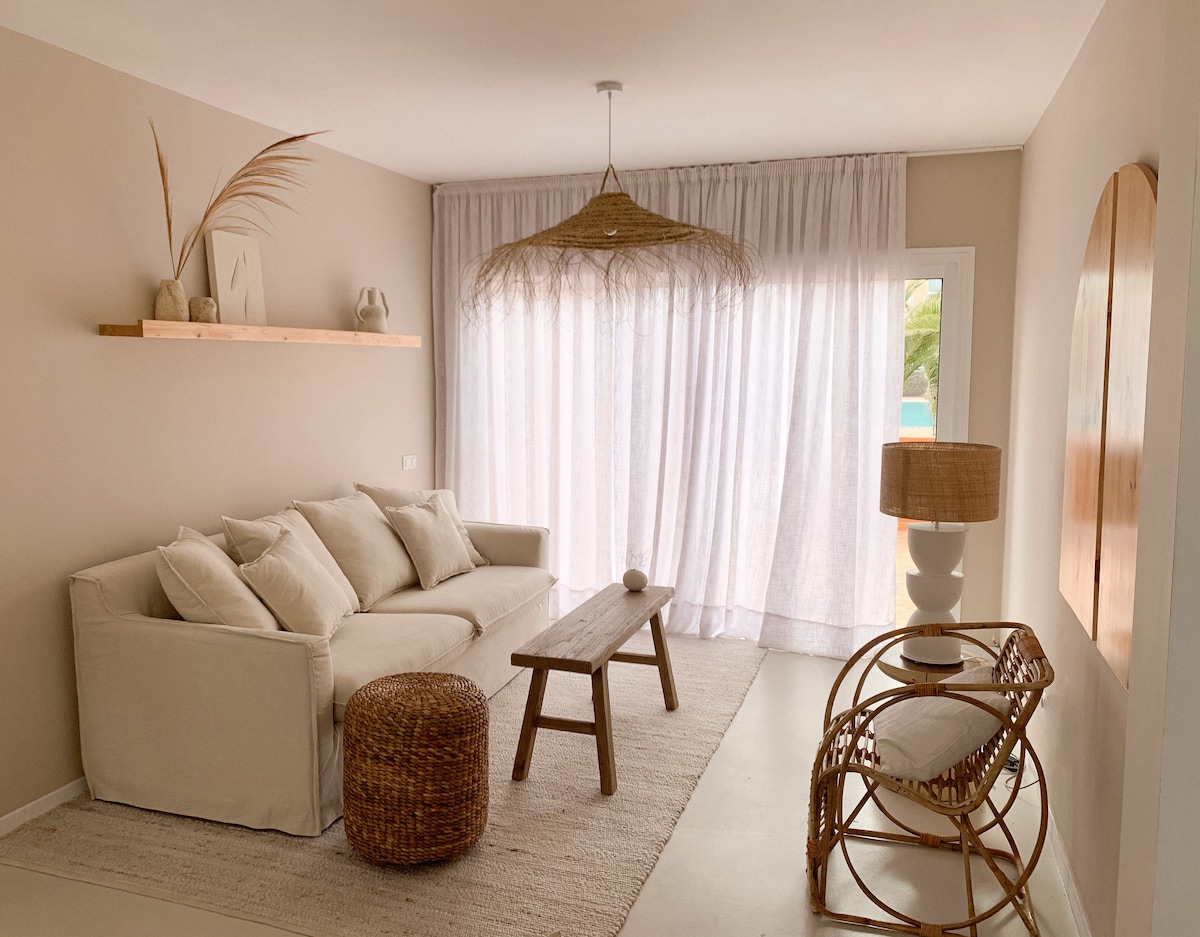 舒适公寓,带海景泳池,靠近富埃特文图拉