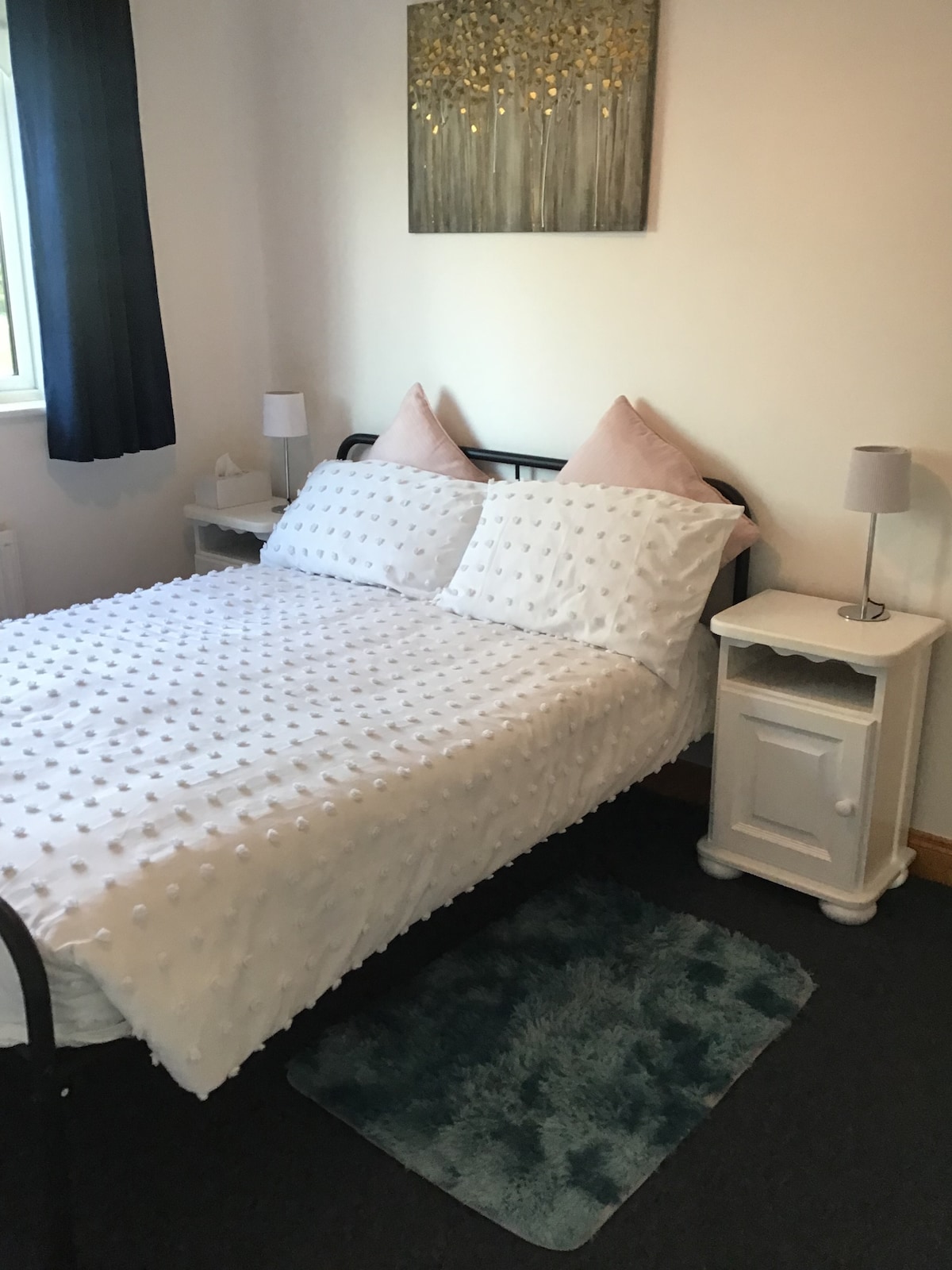 Spacious large Bright Double Room, For ONE FEMALE ,Dublin Airport about 15 min About €45 in a Taxi ,Just 5 minutes walk from Liffey Valley Shopping Centre, with a selection of shops, Restaurants and a Cinema, The bus stop is only a 5 minute walk, City Centre is 30 - 40 minutes by bus, depending on traffic Across from the house is a large green, Supermarkets 10/15 minutes walk, I have a 5 year old Labrador