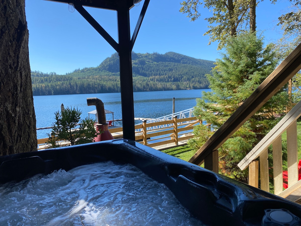 The "Lower" Cottage, a serene beachfront retreat featuring an exclusive private hot tub with stunning lake views, experience tranquility at its finest ,where this fantastic property includes a wharf, perfect for boating enthusiasts. Bring your boat, fishing rods, even a tent, as there’s plenty of space ! This charming cottage accommodates up to six guests, 1 bedroom featuring a queen bed, a Murphy bed in the living room, pullout sofa bed. Create unforgettable memories at this lakeside escape!